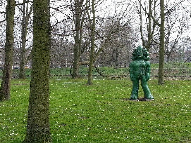 all you need to do in order to get from the student hotel to the south tip of the old town is bike south through rembrandtpark, then east through the even bigger vondelpark. and yes, they have amazing roads and bike paths on which you can really gun for it! they are also blotted with some pieces of particularly pointless public art…