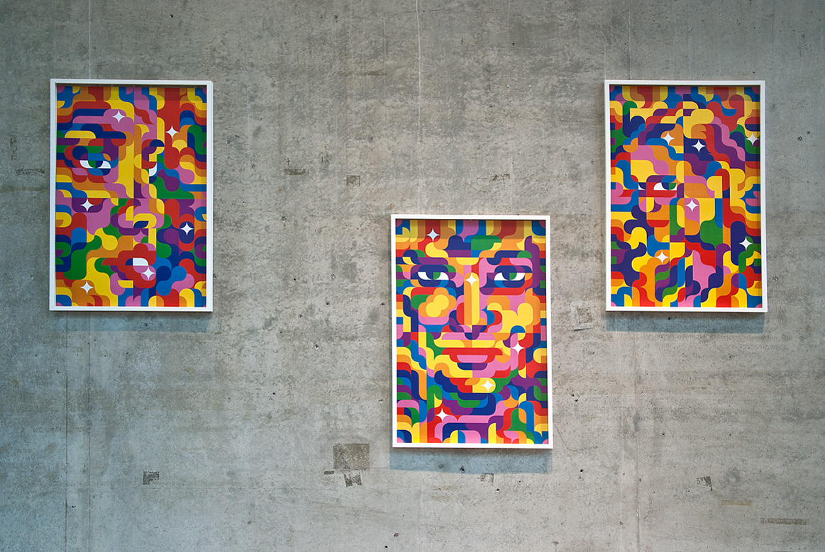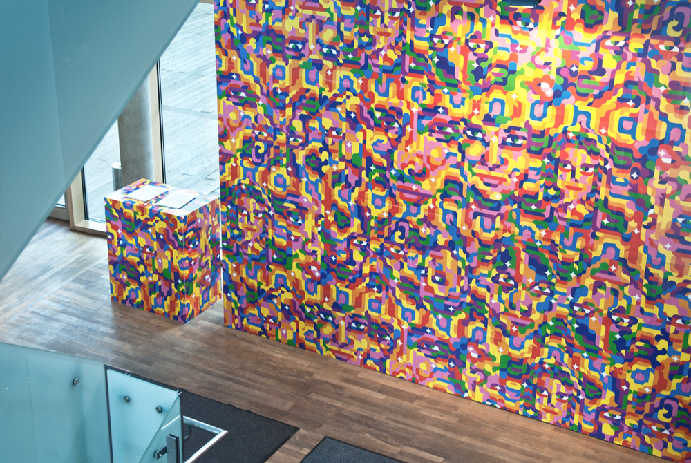 “skvís” by siggi eggertsson is less heady even though girls’ faces are hidden in its psychedelic blur. originally conceived to transform an entire room into a space trip, the installation unfortunately looks a bit lost now in its scaled down version. take a step or two towards it, though, and you might yet feel like you’re getting sucked into its lusty pleasure. eggertsson is also working on a really neat-looking screensaver for his son.