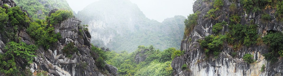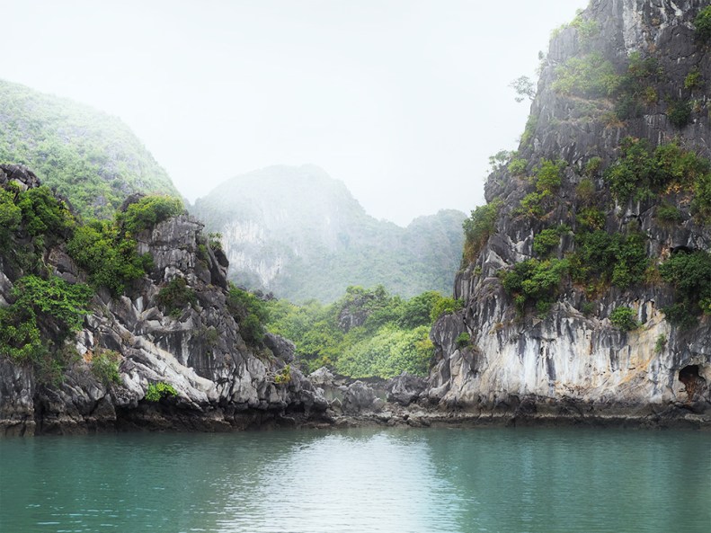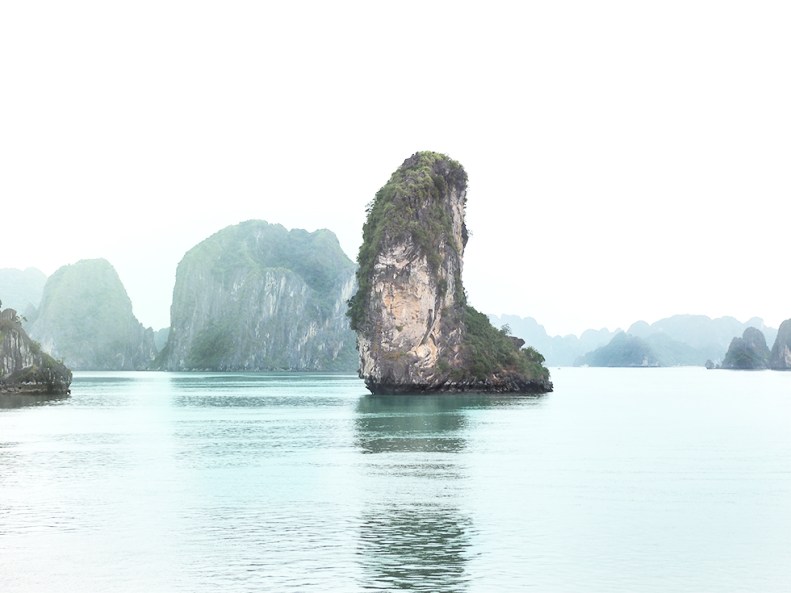 on board our boat, our journey takes us into ha long bay. as far as they eye can see, thick fog caresses the bay’s green water and its massive formations of limestone, which pass by silently as we continue our journey. as an old vietnamese legend has it, ha long bay was formed by a dragon. trying to dive, it cut deep furrows into the land, which the ocean soon flooded.