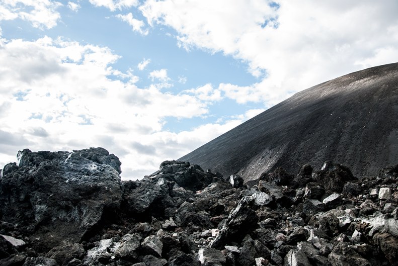 it was in 1999 when the cerro negro last covered the land with a heavy wave of magma. solidified, it still displays dramatically how the slow gush ate into the earth. but what once was havoc and destruction is now fertile ground: the ‘black beast’ sits in an ocean of yellow sardillo blossoms and fecund peanut fields. however, the closer we get to the cerro negro, the more hostile nature becomes. ashes have colored the soil pitch black and soon we find ourselves in a marsian landscape of six-foot chunks of lava. as the burning sun is charring this rough patch of land, we experience perfect loneliness.